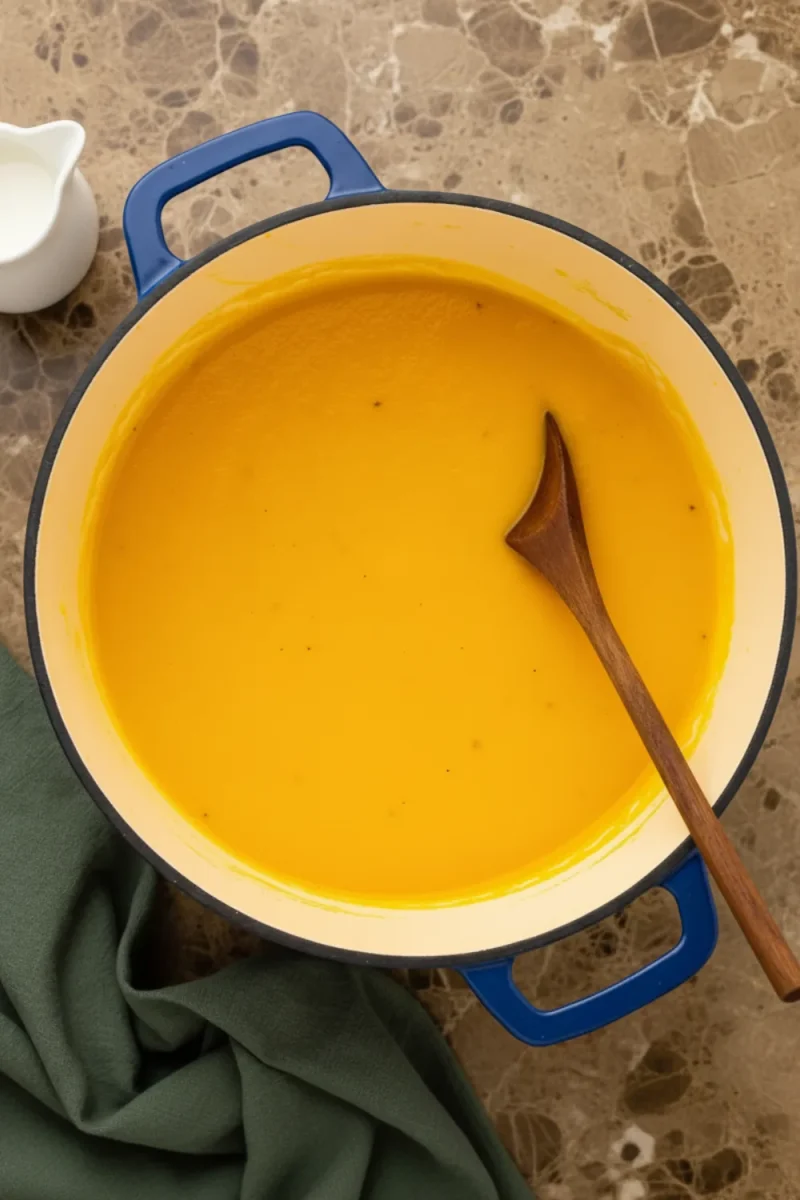 Time to make it smooth! You can use a immersion blender right in the pot. Or, you can carefully pour the soup into a regular blender.