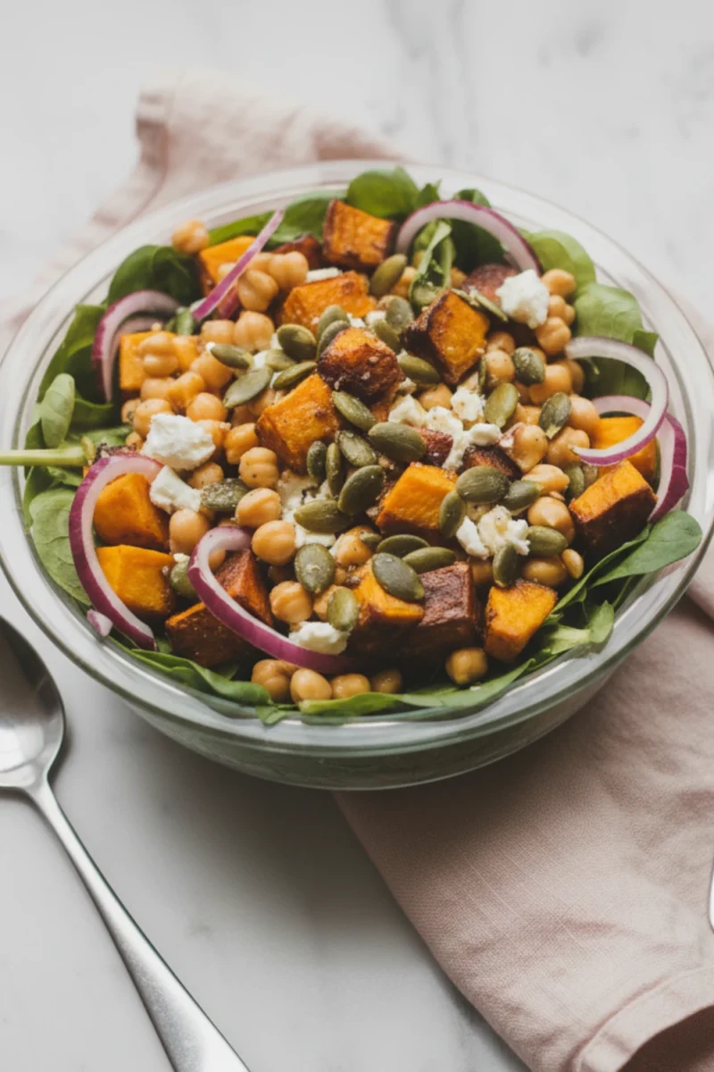 Fresh greens and tangy cheese tie it all together. Whether you’re packing lunches or feeding friends, this roasted pumpkin chickpea salad wins every single time.