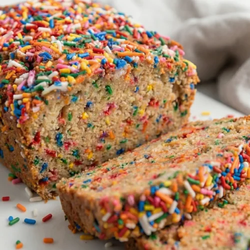 This Sugar Cookie Banana Bread is pure magic! It’s my go-to treat when I want something cozy and sweet. You get that classic banana bread we all love, but with a fun sugar cookie twist. The best part? Those colorful sprinkles make every bite feel like a party.