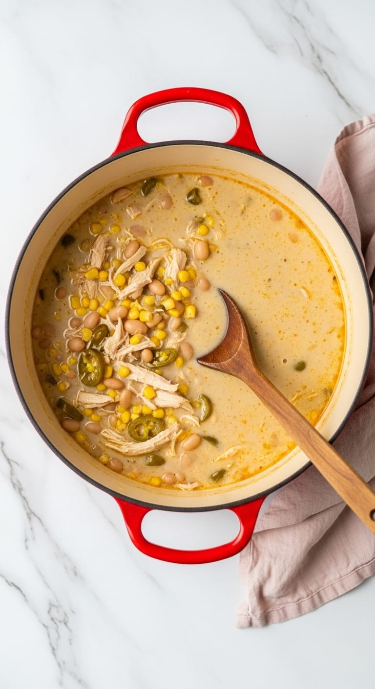 - Add remaining ingredients: Stir in white beans, green chiles, and corn, simmering for 10 more minutes together.